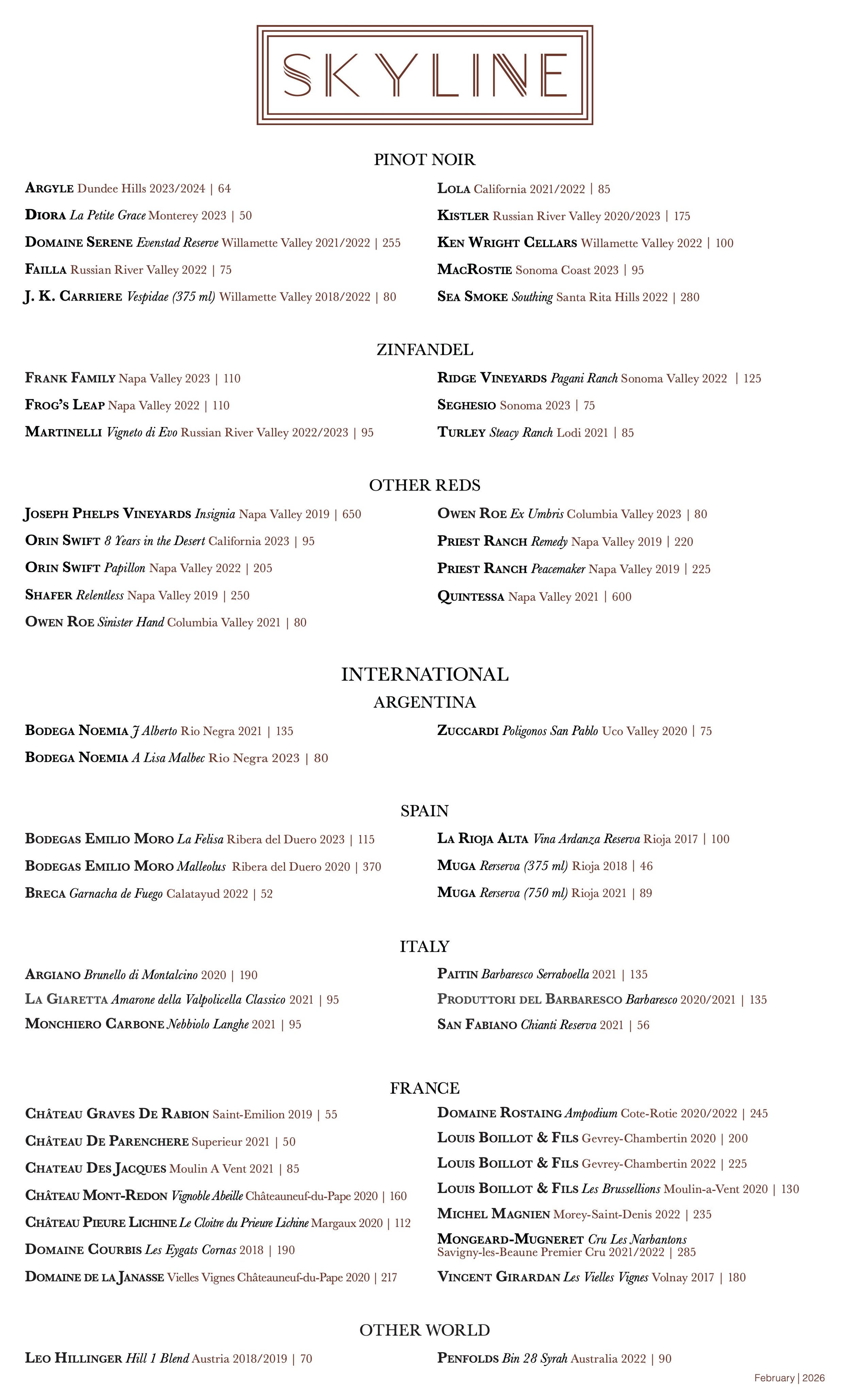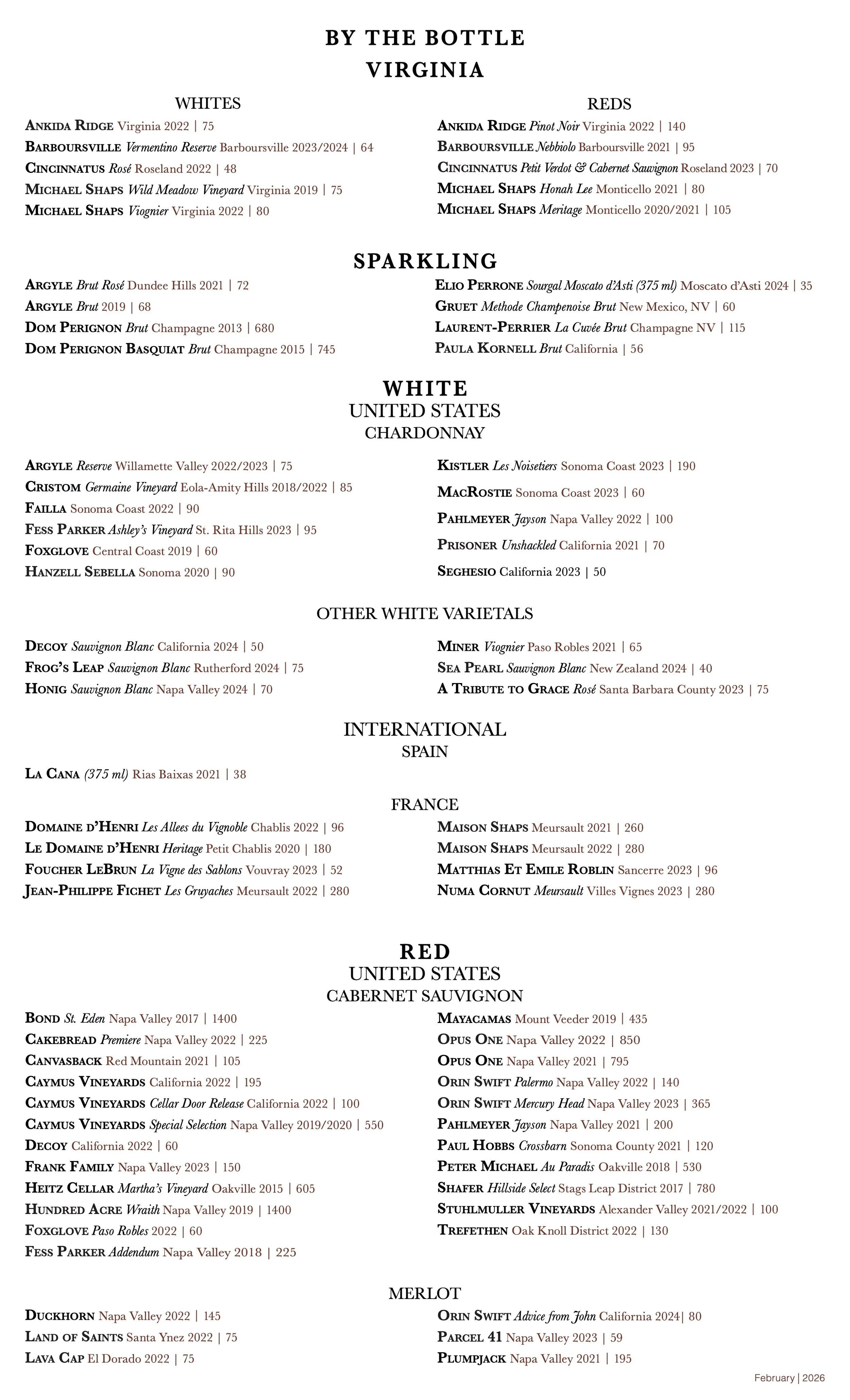 Wine List
